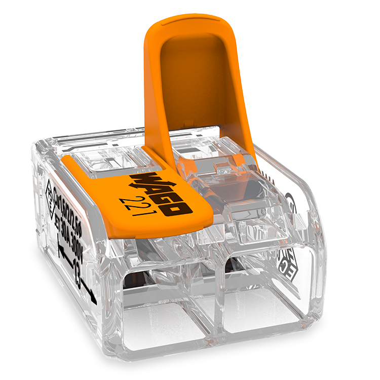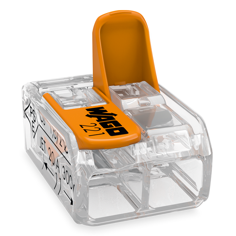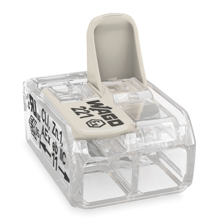 Mit den 2-, 3- und 5-Leiter-Klemmen verbinden Sie schnell und einfach alle Leiterarten mit unterschiedlichen Querschnitten. Feindrähtige Leiter können mit einem Anschlussbereich von 0,14 bis 4 mm² angeschlossen werden, ein- und mehrdrähtige Leiter von 0,2 bis 4 mm². Die 6mm²-Variante schliesst alle Leiterarten mit Leiterquerschnitten von 0,5 bis 6 mm² an.